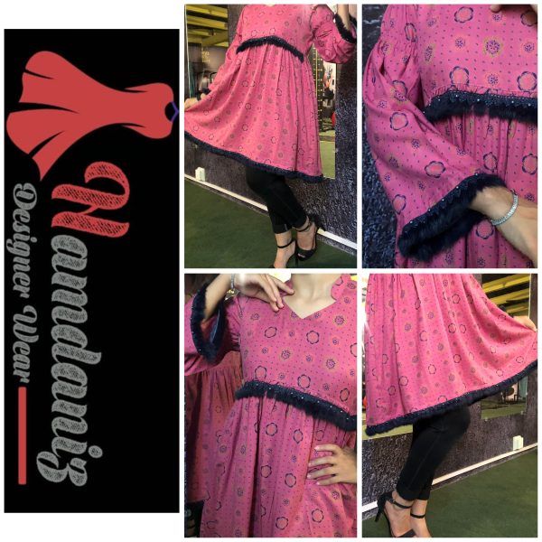 This tunic is part of a winter collection, designed to provide warmth with its Marina fabric while maintaining style with lace embellishments.