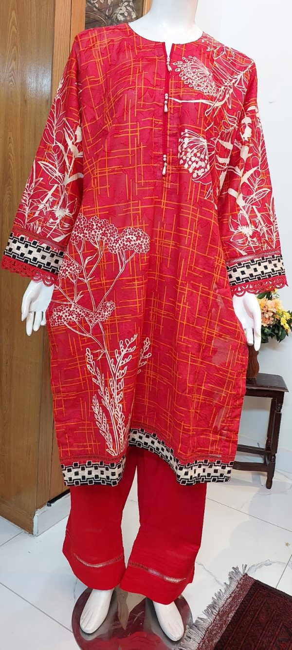 Elevate your style with this breathtaking large floral print Brochhia suit in vibrant red!