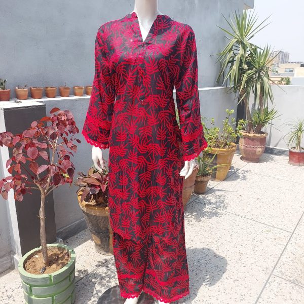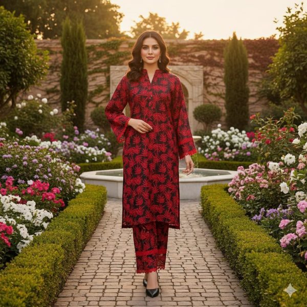 Make a bold yet graceful statement with our shocking pink Leaf Embroidered Co-Ord Set—a perfect blend of tradition and modern charm. Crafted from premium fabric, this two-piece outfit features an intricate red botanical print over a black base, creating a rich contrast that’s both eye-catching and refined.