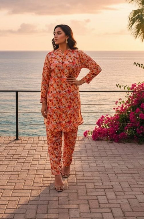 Step into effortless elegance with our beautifully designed Malai Lawn Suit, crafted to keep you comfortable and stylish throughout the day. This soft, breathable fabric features a vibrant orange and red floral print, bringing a refreshing burst of color to your wardrobe.