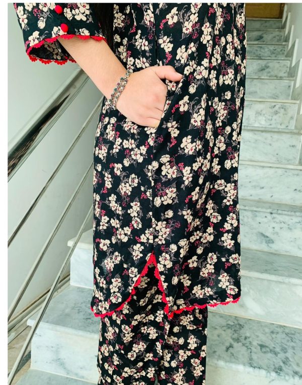 This stitched suit is ready to wear, providing a stylish and hassle-free addition to your wardrobe. Perfect for casual outings, daily errands, or a relaxed get-together.
