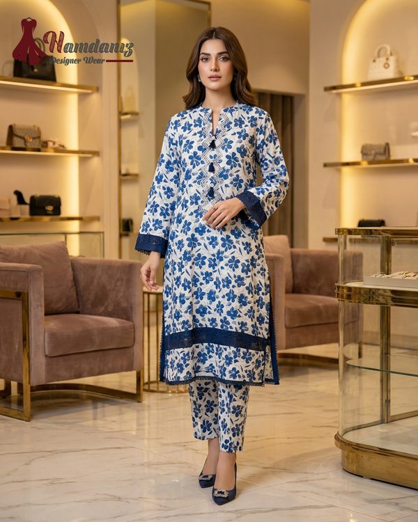 The refinement continues with an organza-edged shirt bottom trimmed with delicate GPO lace, while the chaak is neatly finished with facing and matching GPO lace for a clean, polished silhouette.