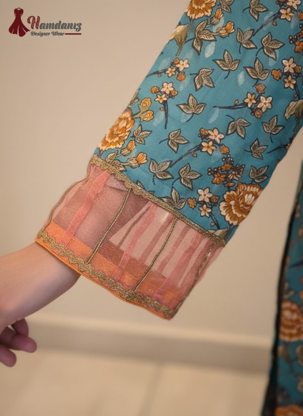 Introducing “گل ساحل” — where tides glow in sea-green serenity and orange whispers shimmer like dawn. A dance of embroidery and sequins — delicate yet radiant, classic yet fresh. Draped in the rhythm of coastal grace, Gul Saahil reflects the soulful hush of سرد رنگ.