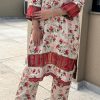 Crafted on a off-white base, the shirt and trouser feature a vibrant floral print in shades of red and pink.