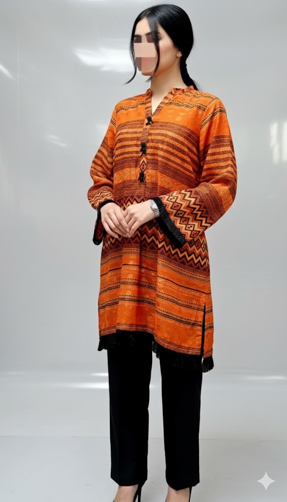 Color: Orange with black, red, and gold patterns