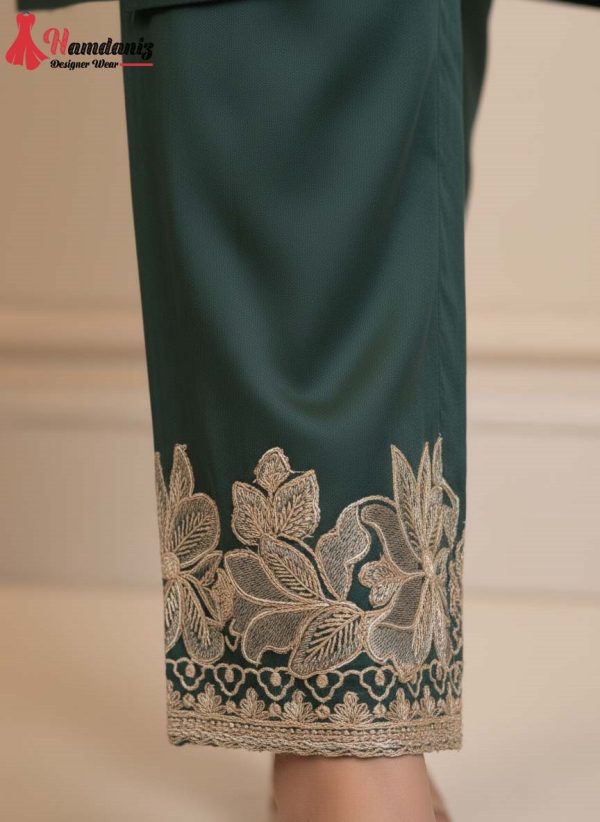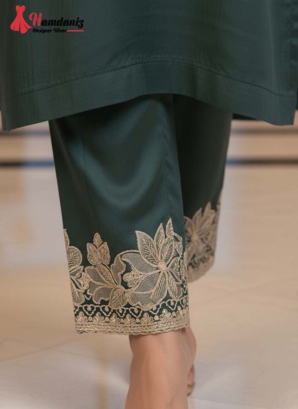 * Matching straight trouser featuring intricate bottom embroidery, elevating the overall look