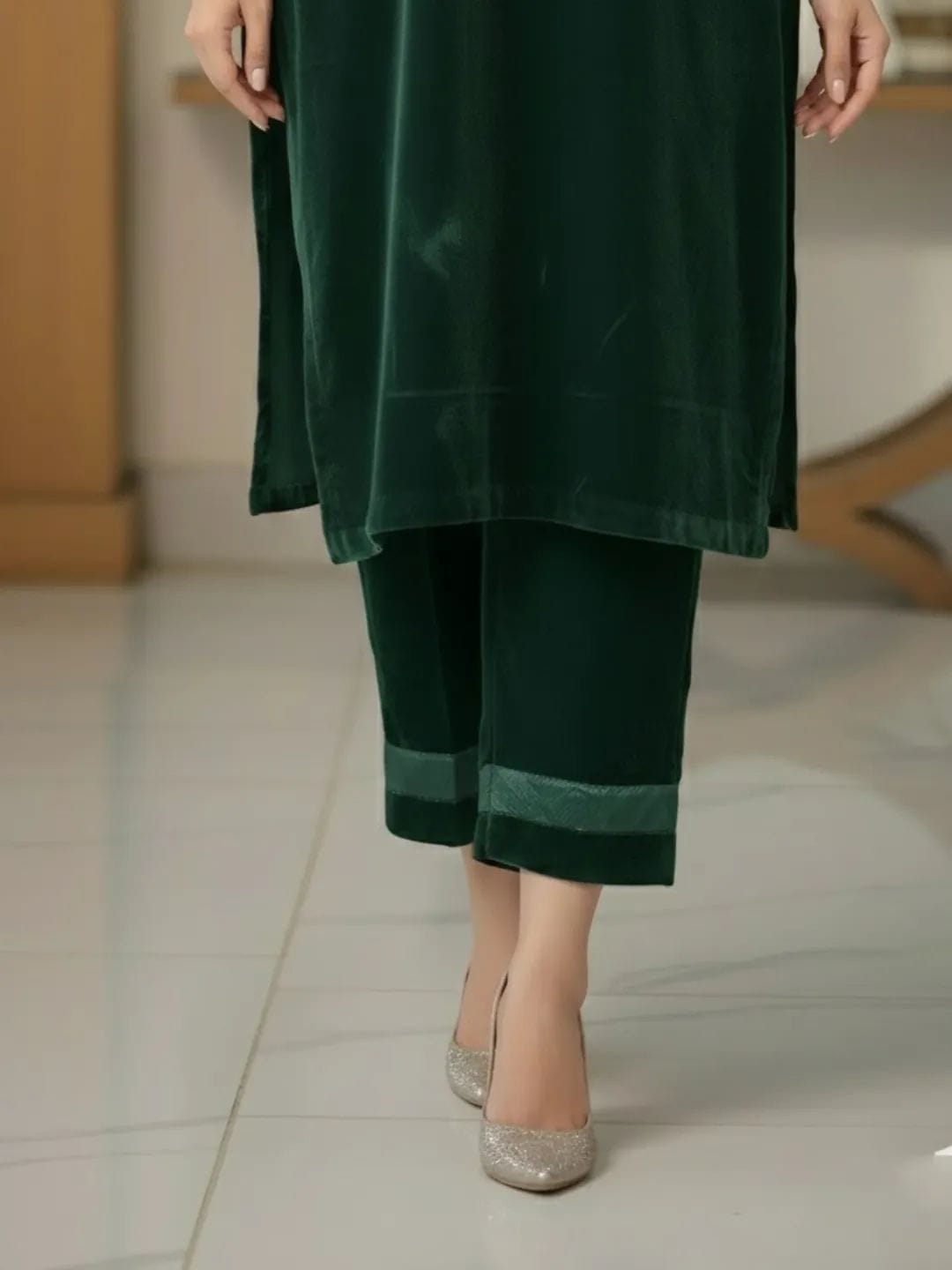 Trouser: Organza Pati on trouser bottom along with simple bead work