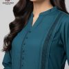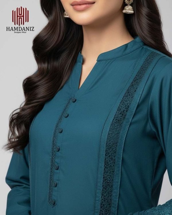 Shirt: Plain shirt adorned with delicate bead embellishment on the neckline and sleeves.