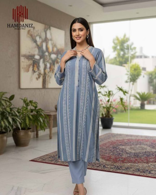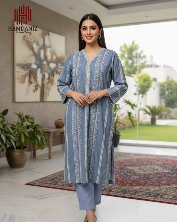 Design: Two-Piece kurta is crafted from soft, breathable cotton. The beauty of Pariza lies in its intricate crimson and white embroidery, gracefully framing the neckline and scattered across the fabric like delicate blossoms.